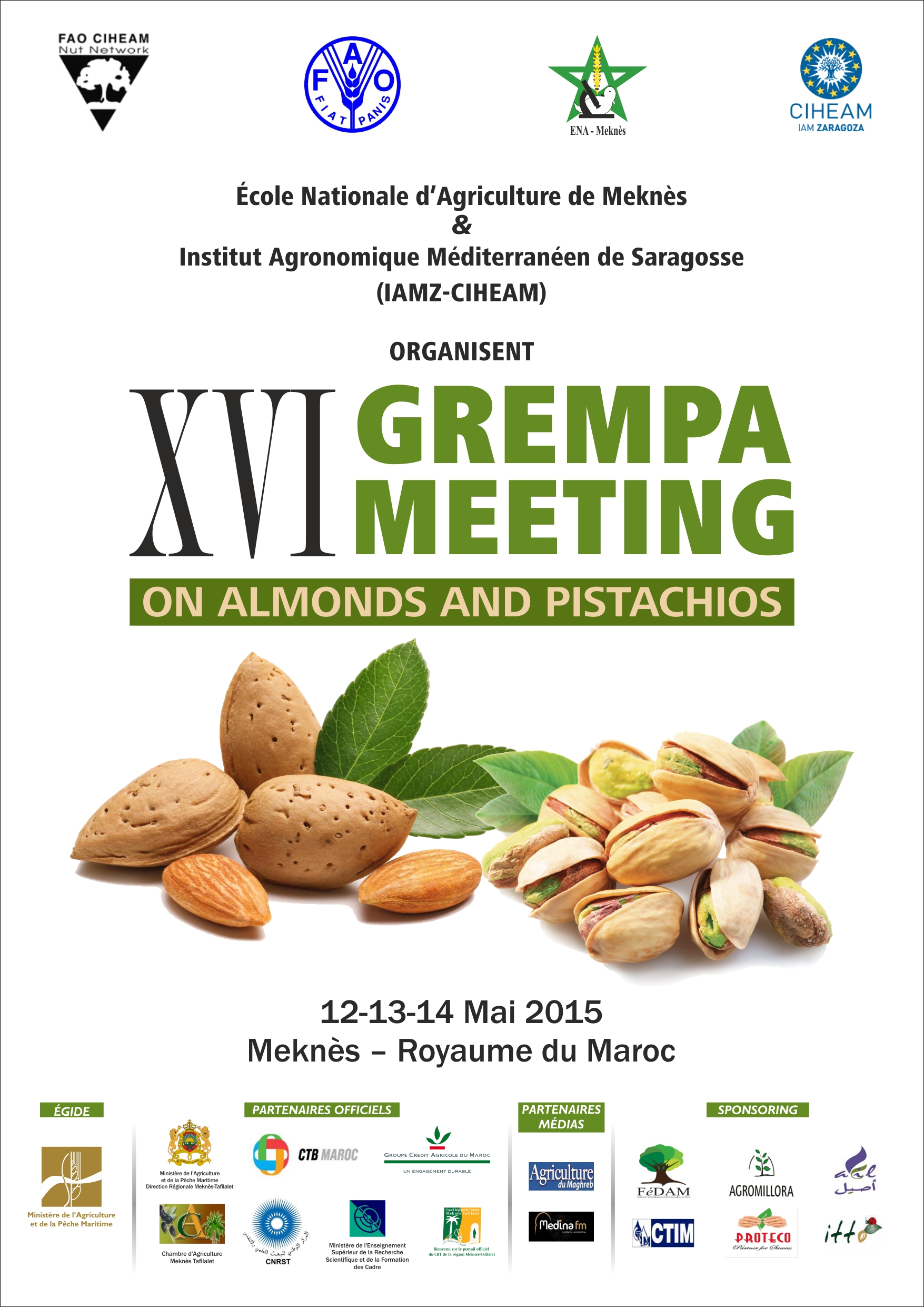 اللقاء 16 لمجموعة البحث المتوسطي لشجرة اللوز و الفستق بقلم نشر في 06/05/2015 شارك هذه المقالة مع أصدقائك!فايس بوك تويترواتساب اللقاء 16 لمجموعة البحث المتوسطي لشجرة اللوز و الفستق تنظم المدرسة الوطنية الفلاحية لمكناس و المعهد الزراعي المتوسطي لسرقسطة اللقاء 16 لمجموعة البحث المتوسطي لشجرة اللوز و الفستق و ذلك أيام 12-13-14 ماي 2015 بمدينة مكناس.